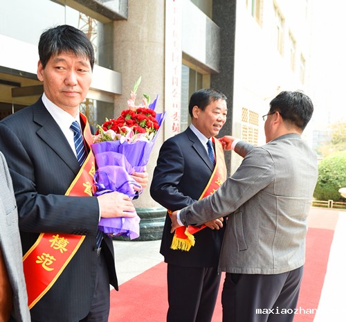 集团公司总工程师齐文,副总经理、工会主席白林科分别为赵廷周、刘咸斌披上大红绶带,工作人员为他们献上鲜花。白林科主持欢送仪式并发表热情洋溢的致辞。集团公司总部机关干部职工参加欢送仪式。
