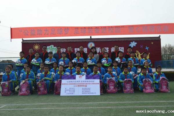 3月15日上午,由陕西省国资委和陕西省妇女儿童发展基金会联合倡议组织的;公益助力足球梦 足球装备进校园;爱心捐赠活动在扶风县天度中心小学隆重举行,地矿集团公司向天度中心小学捐赠了300套足球装备、体育书籍和反光书包。